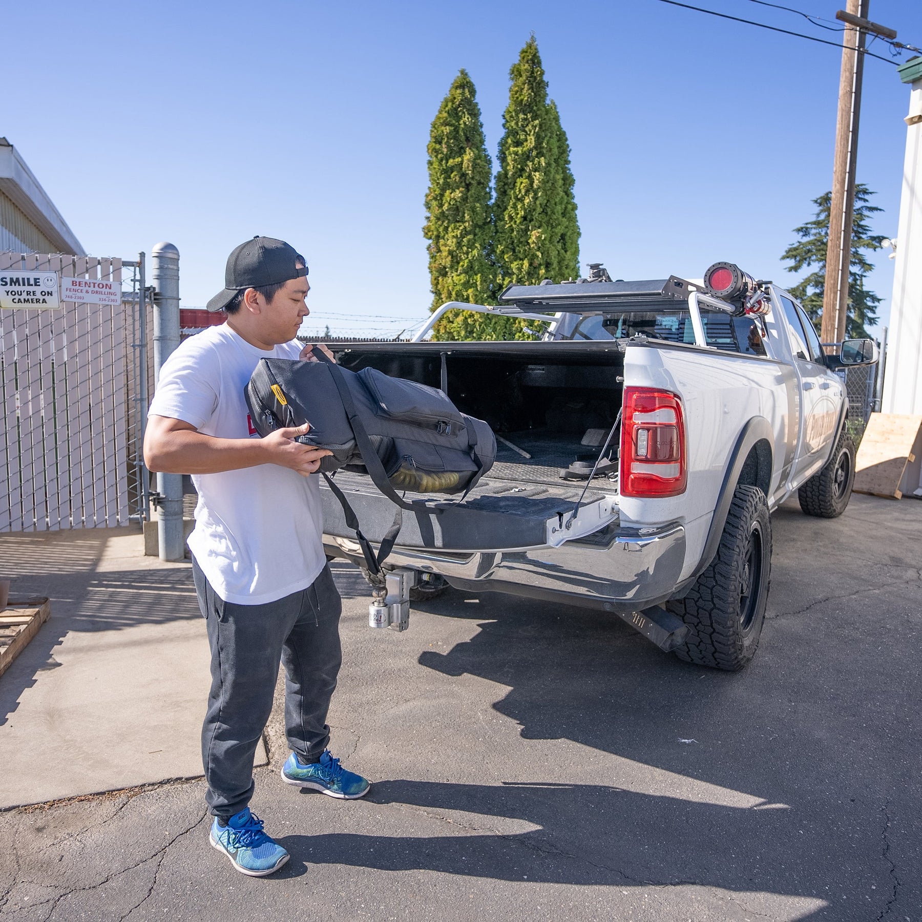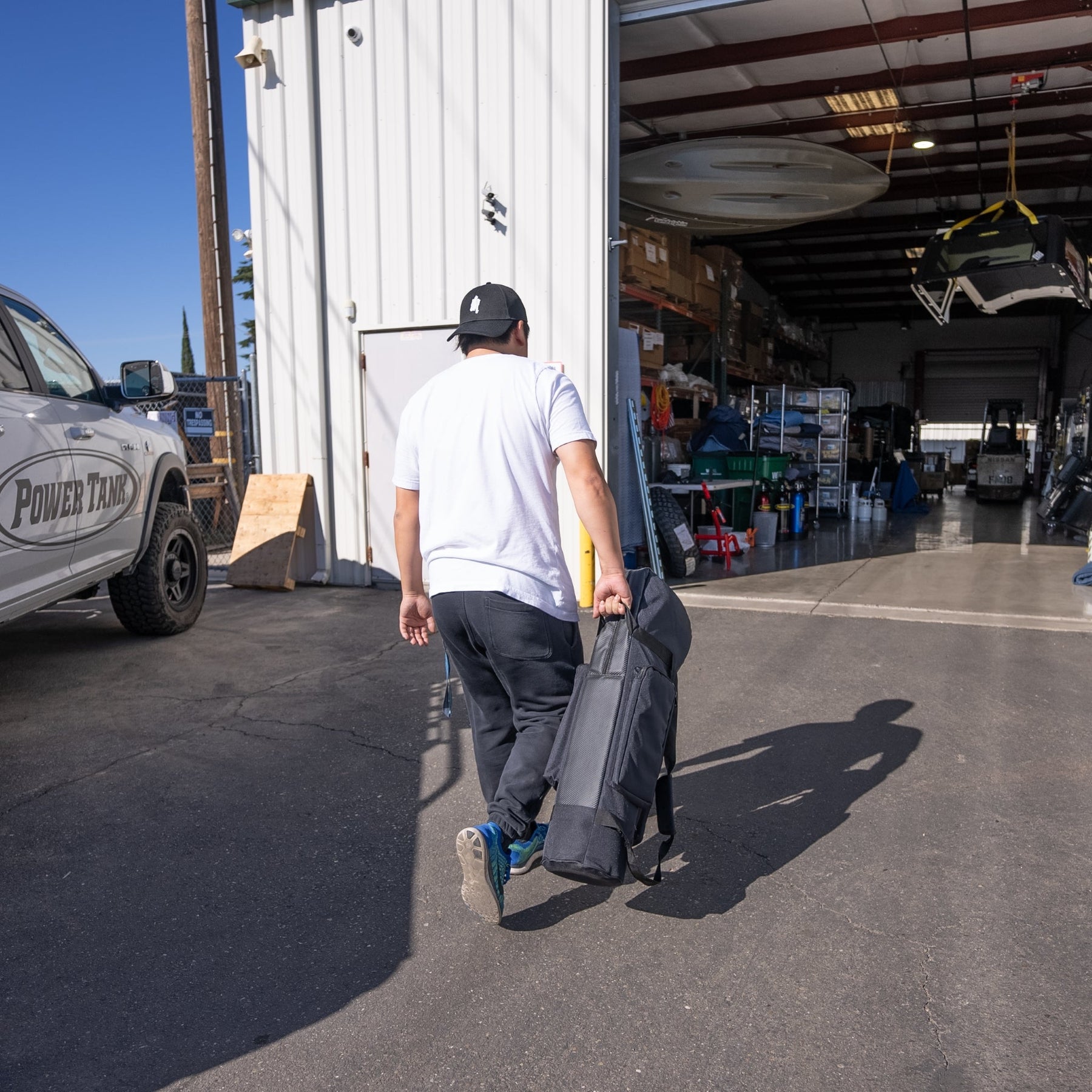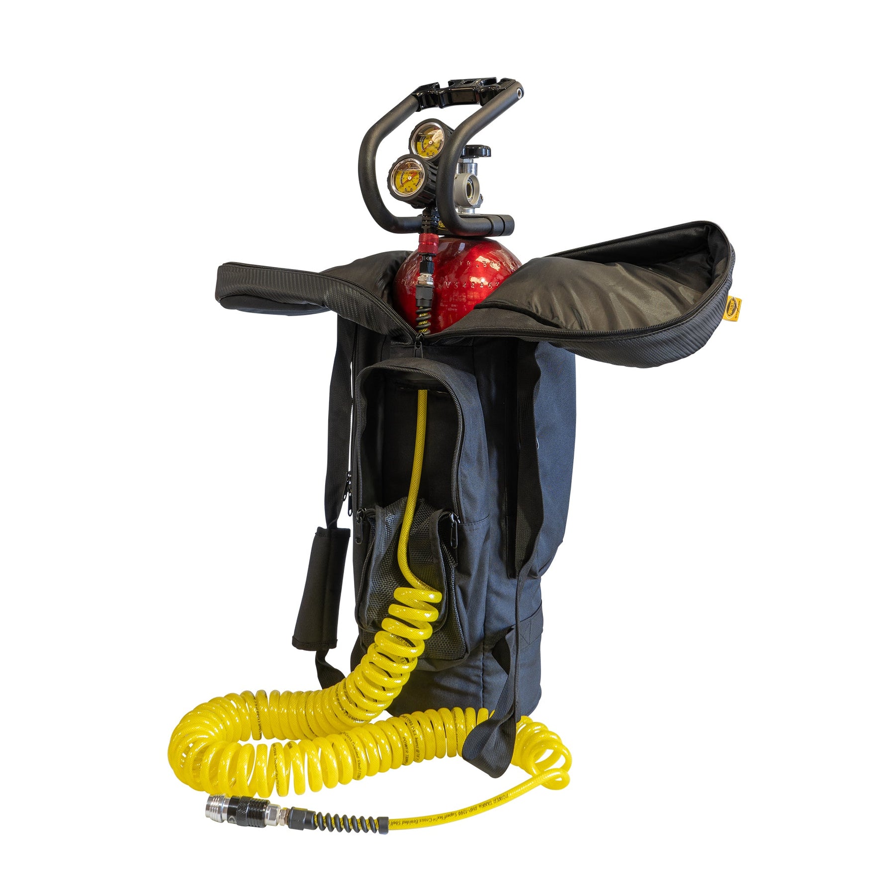 The new and improved Speed Bag for 15 lb Power Tanks is perfect if your Power Tank is more of a mobile tool being carried from place to place or from vehicle to vehicle. Features a main compartment with 1/4 inch foam padding, larger front mesh hose pocket with pass-through, and two zippered side pockets for your Ventoso Tire Inflator and other tools. With the hose-pass through, your Power Tank is always ready to go. Unzip the top for full access to your regulator and valve and pull the hose out of the mesh pocket. Made of abrasion resistant ballistic nylon with an equally hardwearing carbon top cover, heavy duty nylon carry handles, and YKK zippers.