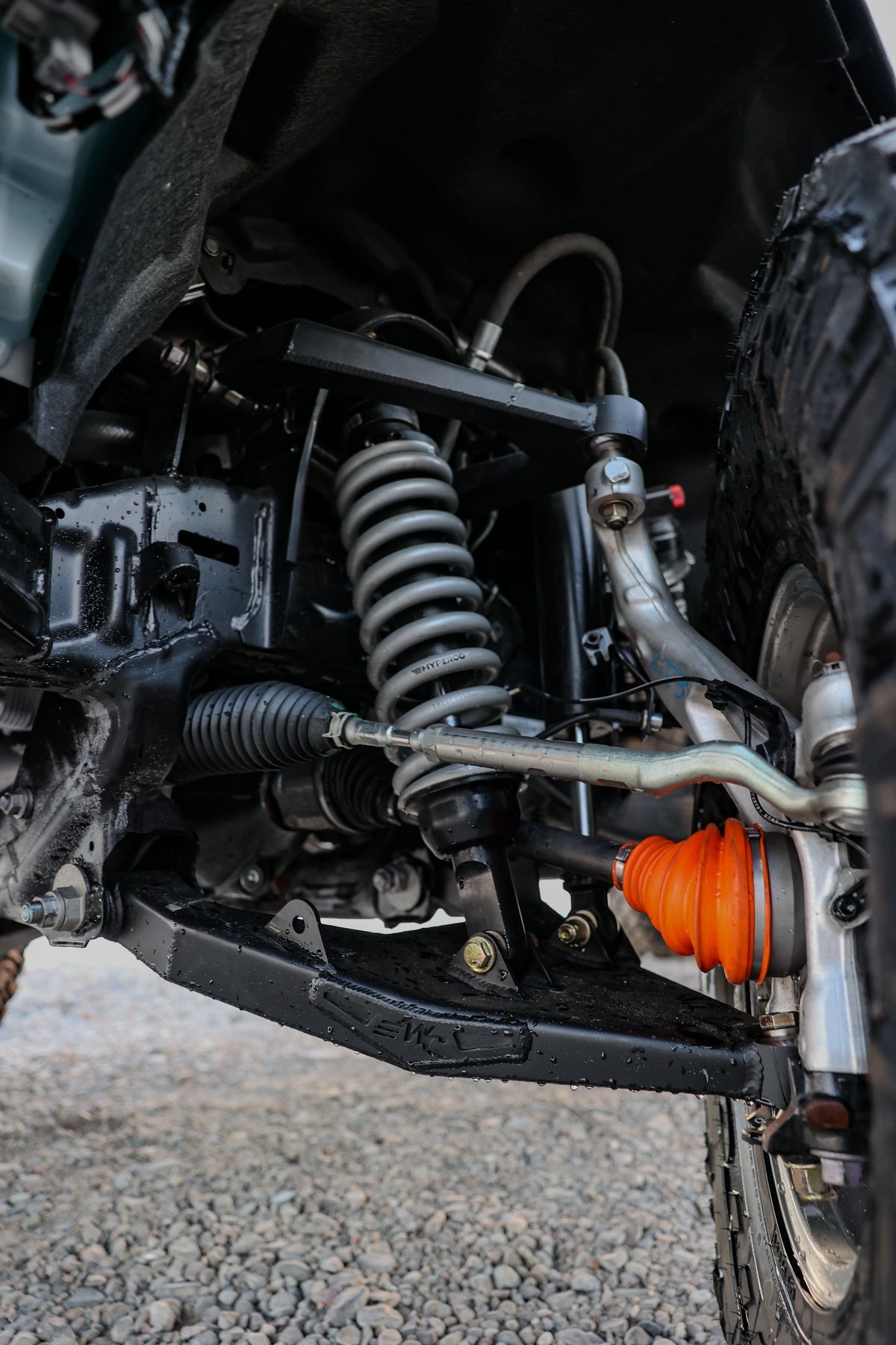 Locked Offroad’s 2.5" long-travel coilovers are engineered for extreme off-road use and tuned for excellent handling and control. Built for kit-specific long-travel suspension setups, these shocks include finned reservoirs, HyperCo springs, and 22-point compression adjusters to deliver consistent performance and heat management in demanding conditions.