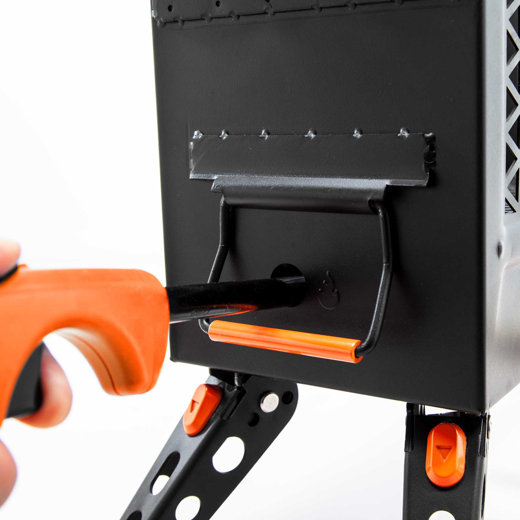 • COMPACT & DURABLE - Tried-and-true ammo can design, powder-coated black steel, stows, and fits anywhere. The collapsible legs and removable lid are easy to set up and quick to break down.