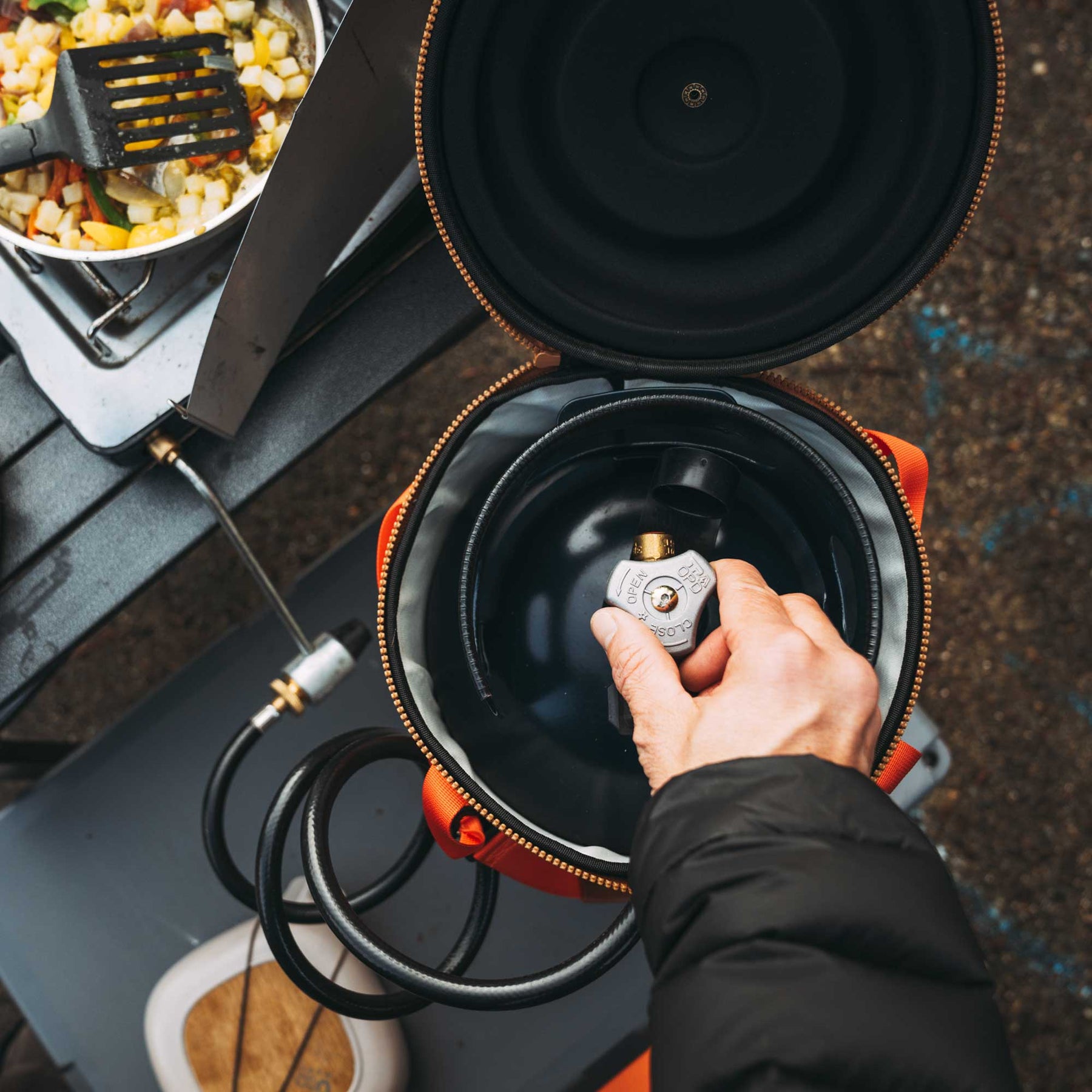• 4 ft. adapter hose with 1-in 20UNEF connector attaches to popular 2-burner camp stoves, along with 0.5-inch QCC1/OPD devices like home BBQ grills.