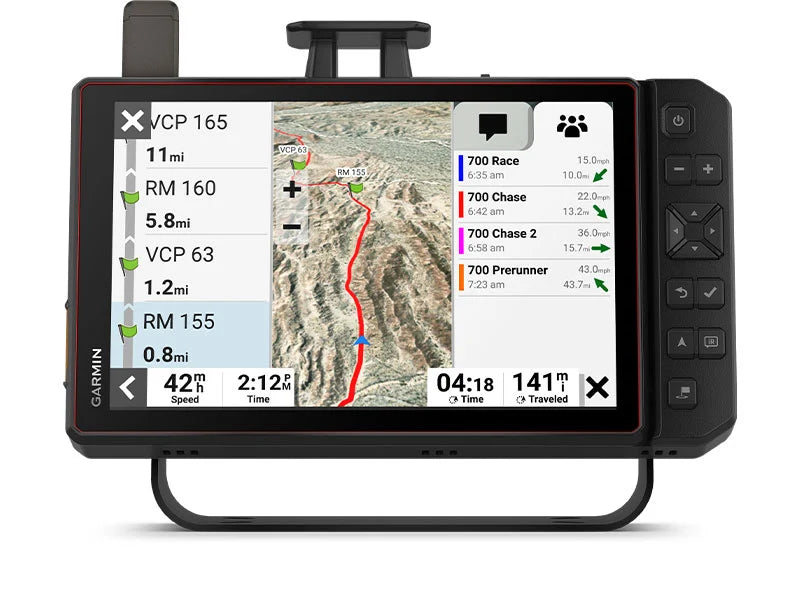 Team tracking with built-in inReach® technology allows race vehicles and chase trucks to message and track each other with live position updates1.