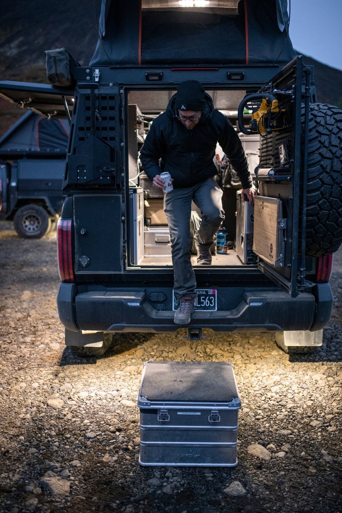 The Goose Gear Alu-Box Top Plate Kit takes the lightweight and rugged Alu-Box aluminum storage boxes to the next level. It turns them into a solid step and gives them a solid top of sitting upon at camp. It also makes a great table when sitting around the campfires.