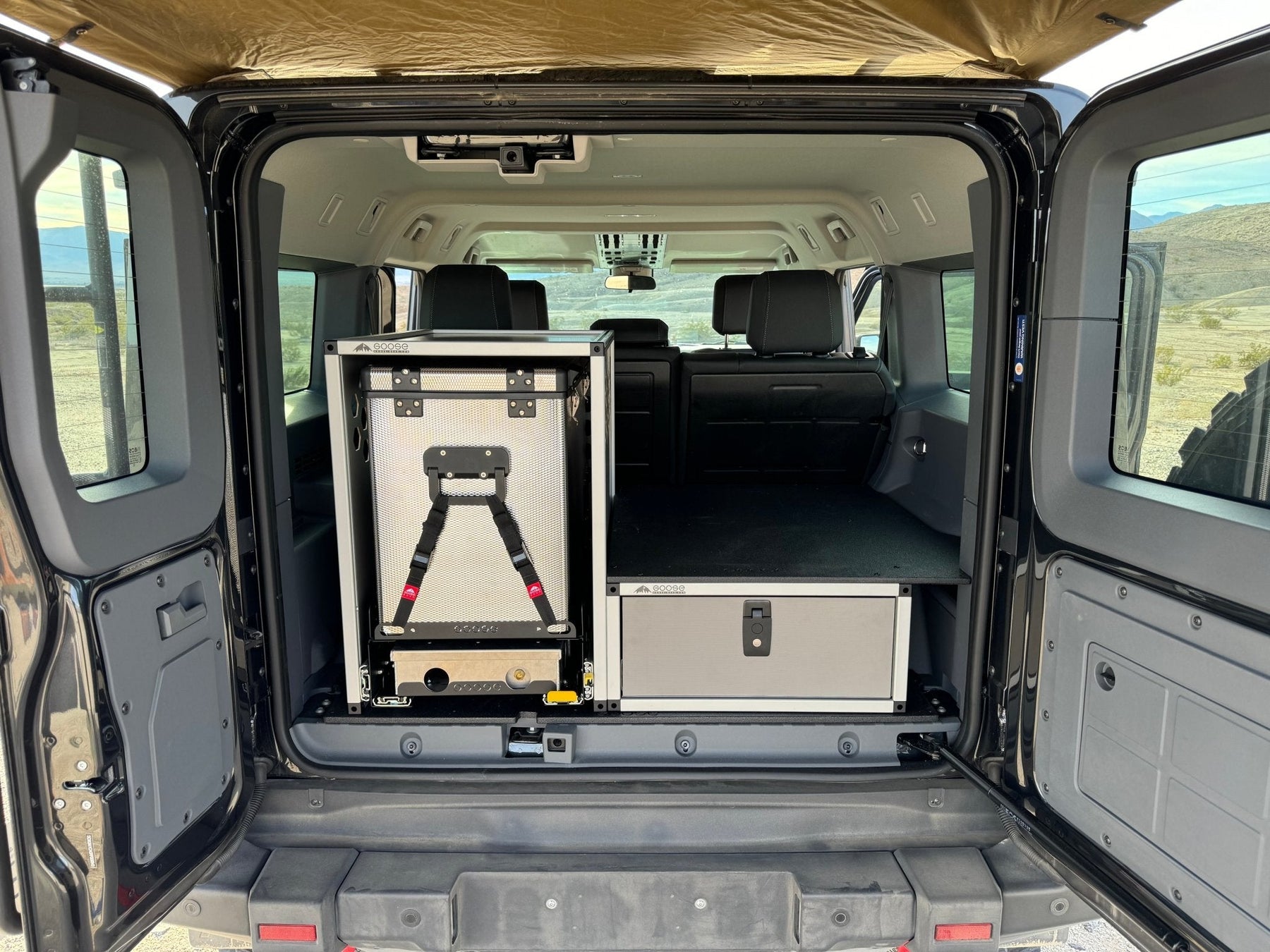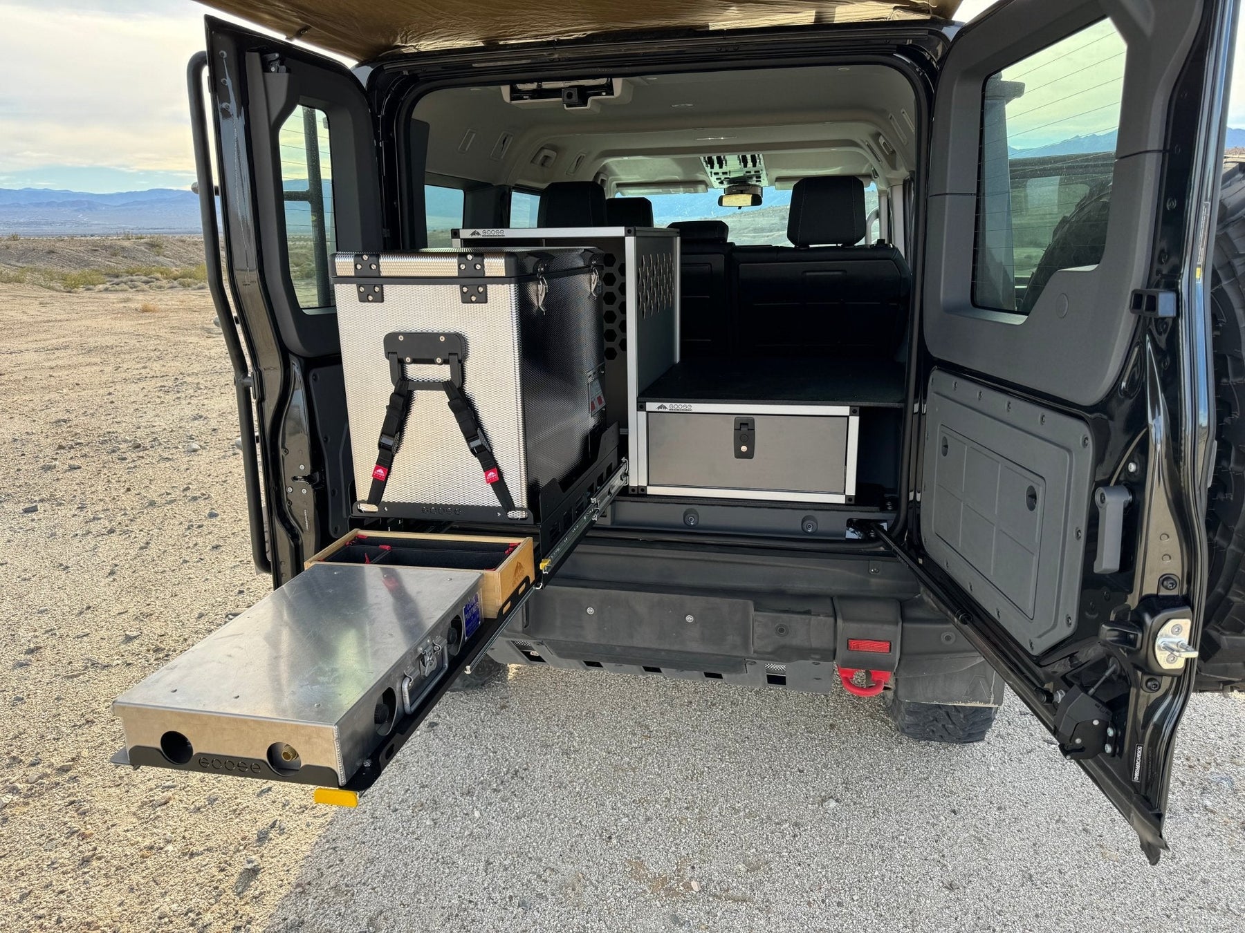 By utilizing a 34" drawer we gain storage that is easily accessible and leaves plenty of room on top for your personal gear.  Things like sleeping bags, pillows and food. Now with Fitted Top Plate you are gaining one extra storage locatable access hatch that can be used to store extra gear. With the ability to store gear on top of the CampKitchen you can keep your entire pantry on top of the CampKitchen.