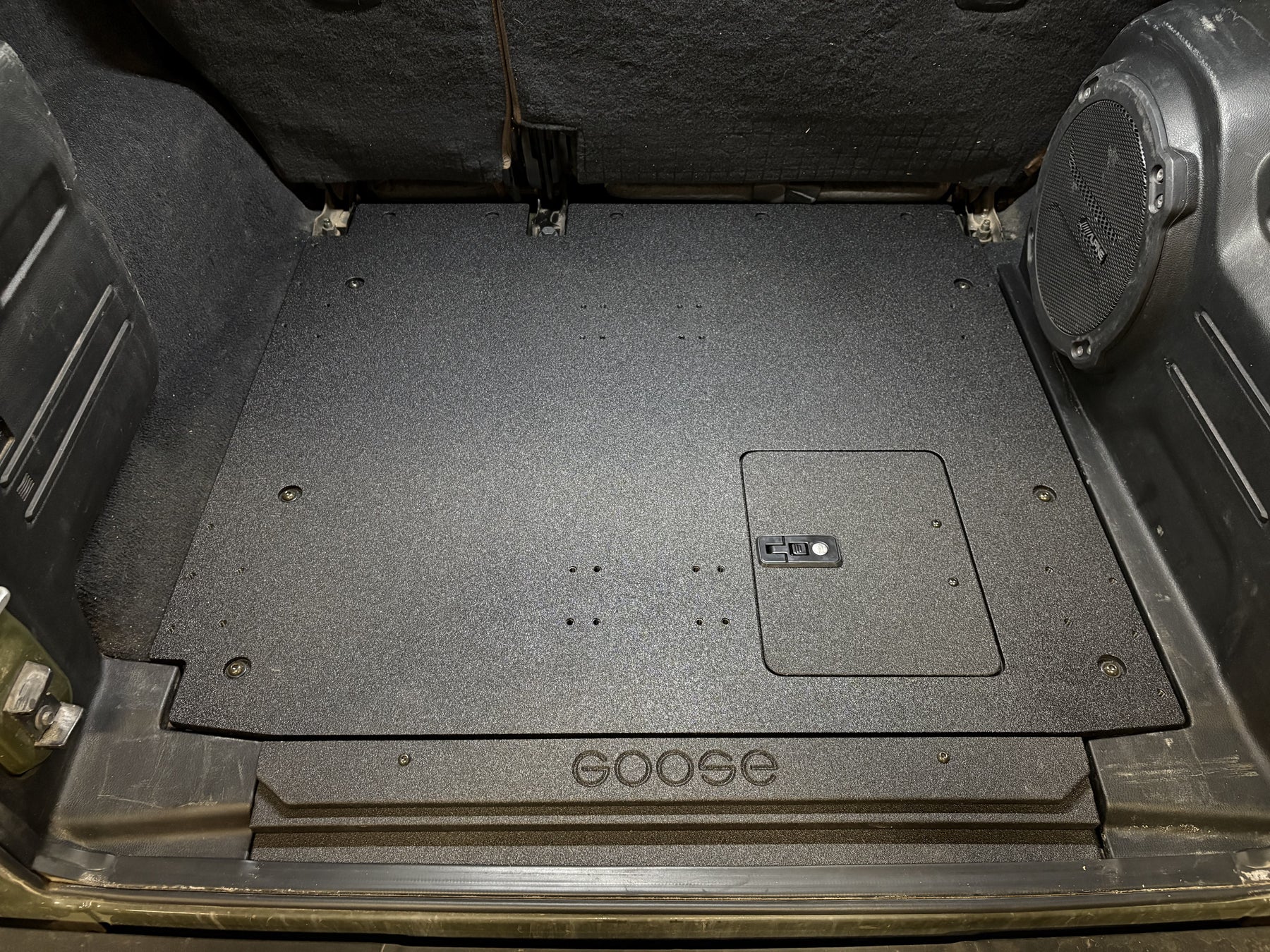 The Jeep Wrangler JLU Rear Plate System is designed and built with industrial grade plywood and coating using our propriety spray methods for superior durability and wear resistance. This Plate System allows the user to easily install various Jeep Specific modules including single and double drawer systems as well as the ever famous Icebox module and the new CampKitchen 2.3 for Jeeps. The plate system also makes a great platform for securing your own storage or gear including dog crates, other fridge slide brands, etc.