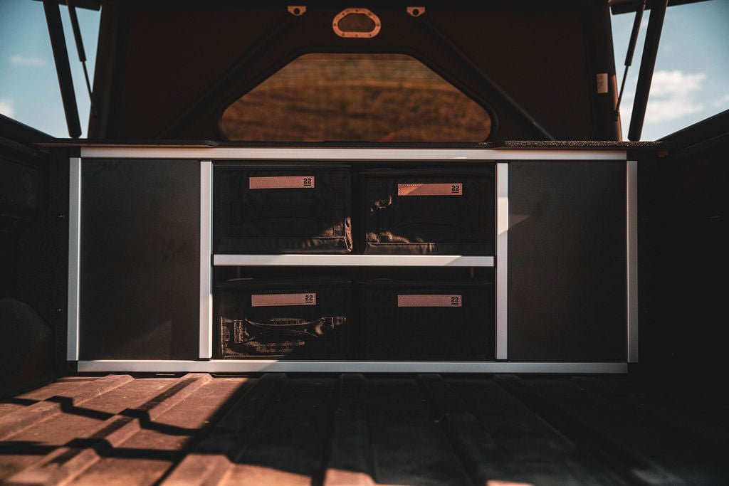 Upgrade your Rivian R1T with the Explore Series Ultra-Lite for GFC, a modular storage solution designed for versatility and ease of use. Whether you need secure storage, a flat work surface, or a fully configurable system, this setup allows you to customize it to fit your needs—all while maintaining access to the R1T’s under-bed spare tire storage.