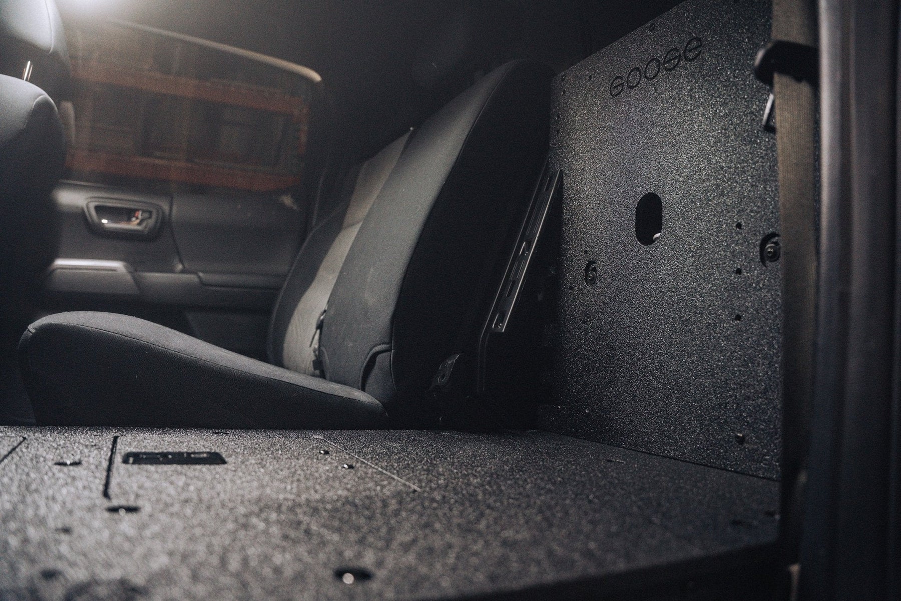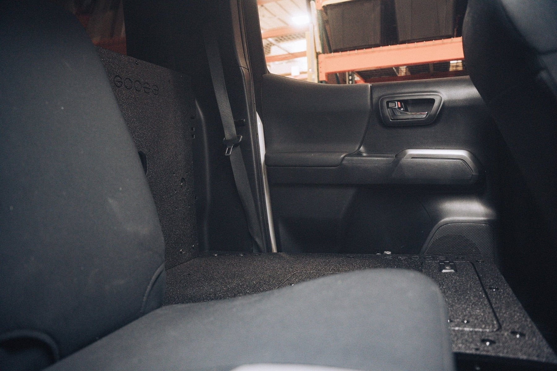 This Tacoma Seat Delete Plate System comes with a Goose Gear Back Wall Panel for both 40% Seat Delete and 60% Seat Delete.