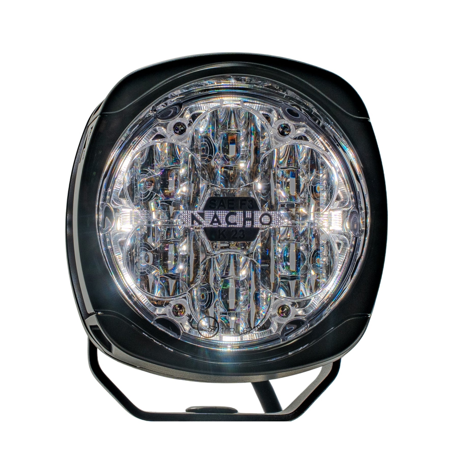 If you are looking for the cosmetic amber look with amber output look no further. The NACHO Quatro SAE/Spot Combo Amber lens is what you are looking for. You still get the dual function street legal fog with high performance spot function of the Quatro, but now you get it with a amber lens. The TRL or trail running light now illuminates a soft amber when you are utilizing the TRL function. Impact resistant lens, IP68 protected and J583 SAE compliant.