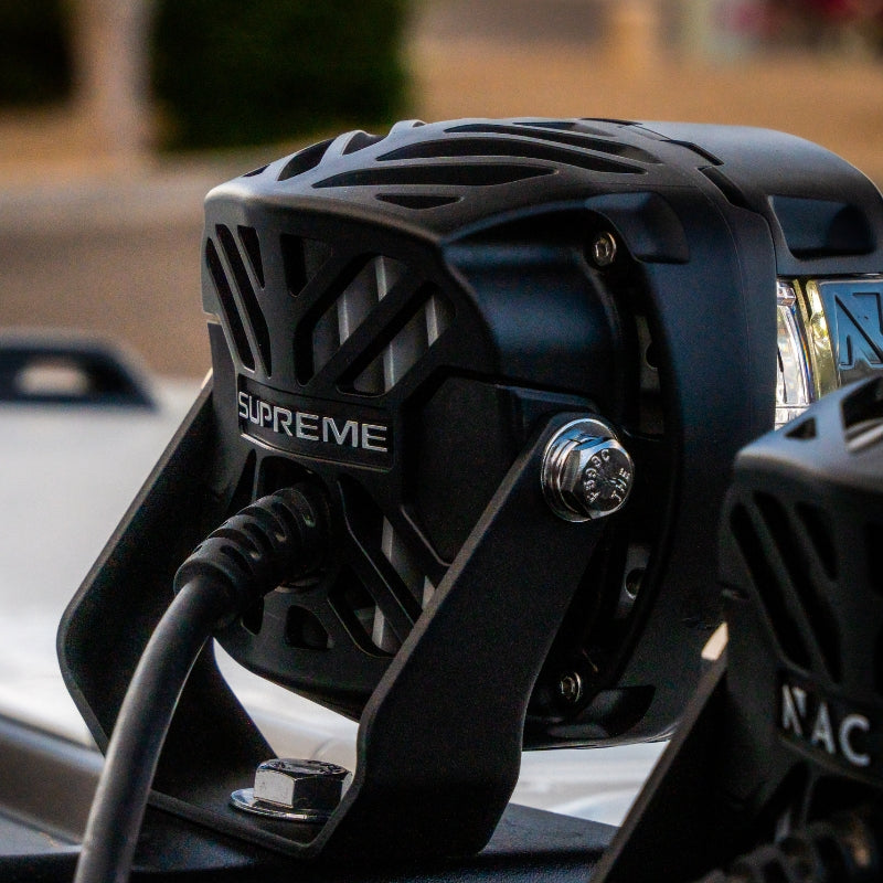 Designed for top-tier performance, the Supreme family features copper circuit boards to allow max power and constant power which simplifies wiring installation increasing reliability. The Tip-to-Chip technology, allows you to select up to 3 of 8 available modes for light set up then you can switch effortlessly through those selected modes with a flip of a switch. This gives you 3 high performing lights in one single light simplifying your lighting package. The Supreme series is designed to lead the off-road light market with the brightest and most functional lights in their class. More product specific descriptions below.