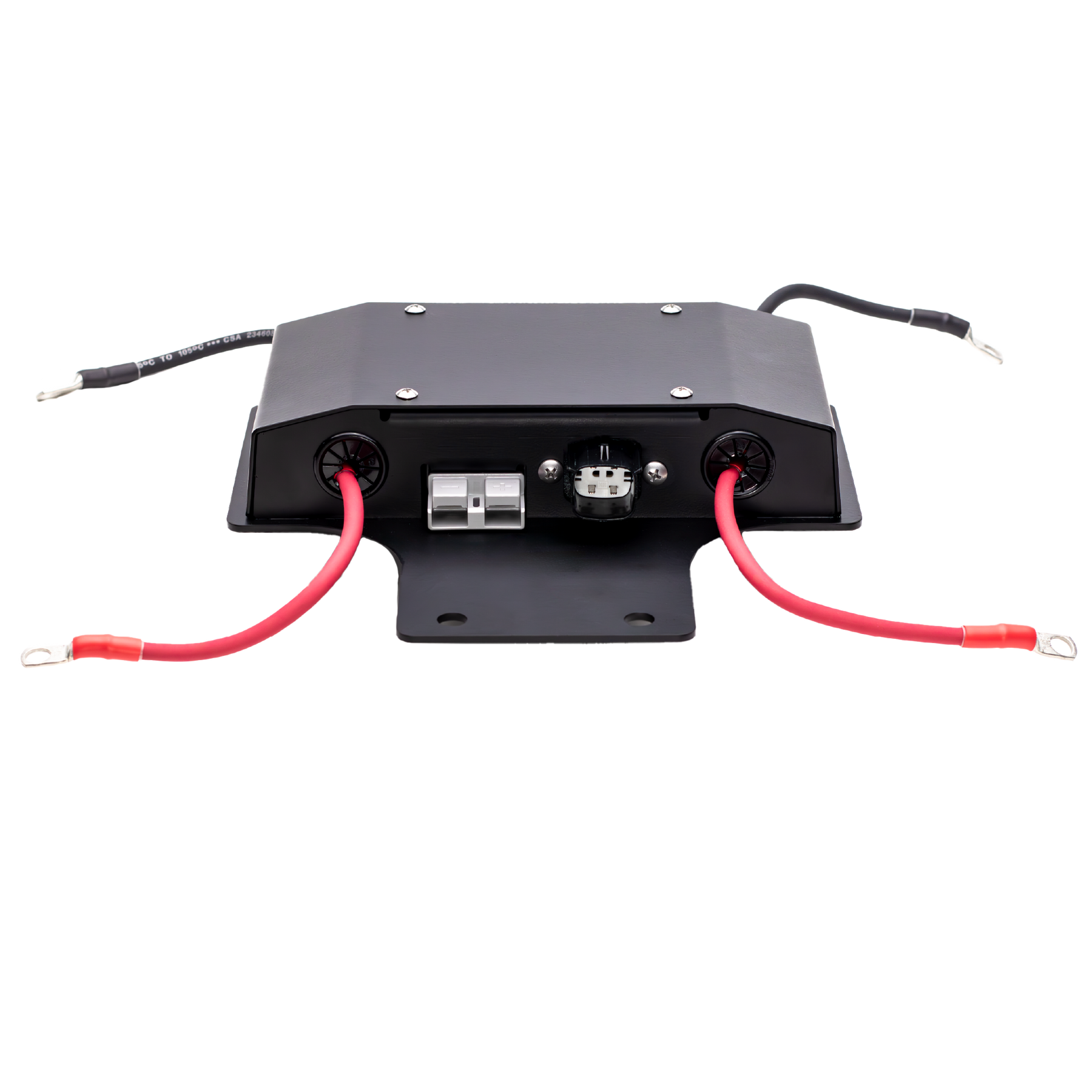 The OMEGA system includes the steel battery tray, a completely pre-wired top lid, and a Redarc Alpha 25 amp DC-DC charger with a mounting bracket. Choose your cranking battery and accessory battery from the options below for the most complete and easiest to install dc-dc charger based dual battery system on the market.