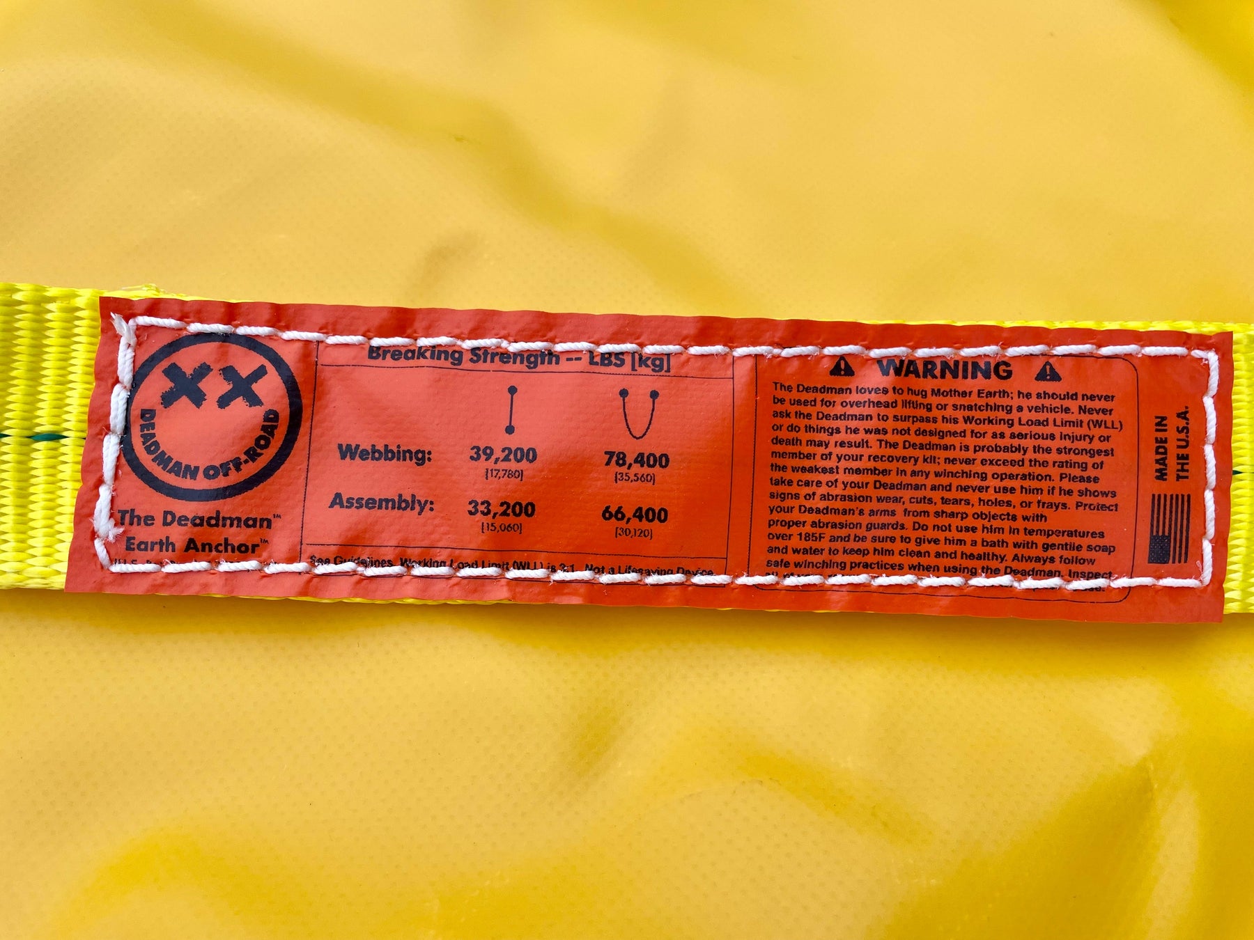 With a Minimum Breaking Strength (MBS) ranging from 33,200 – 66,400lbs after assembly (depending on its configuration), the Deadman will be the strongest member of your recovery kit. We’ve gone to great lengths to ensure we get every last ounce of strength out of these American made, Class VII polyester industrial slings. The Deadman won’t let you down!