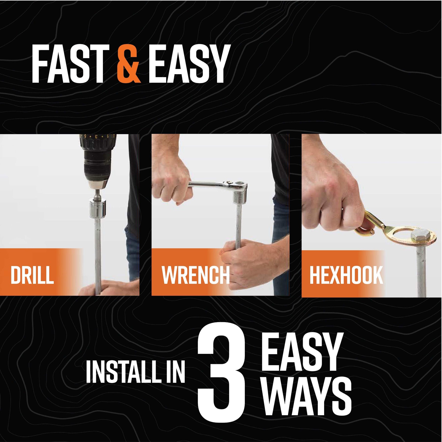 Feedback from customers who use our GroundGrabba Pro II's for more semipermanent ground anchoring of pop up garages, timber for landscaping, simple garden retaining wall use. In these instances, one needs to drill a hole in the material that is wider than the 1" washer collar for the flights(spirals/wings) of the GroundGrabba to pass through. Once the hole diameter is larger than the Hex Head and Collar there is a need for a wide washer to make the diameter of the original collar wider. Enter the HookWasher!