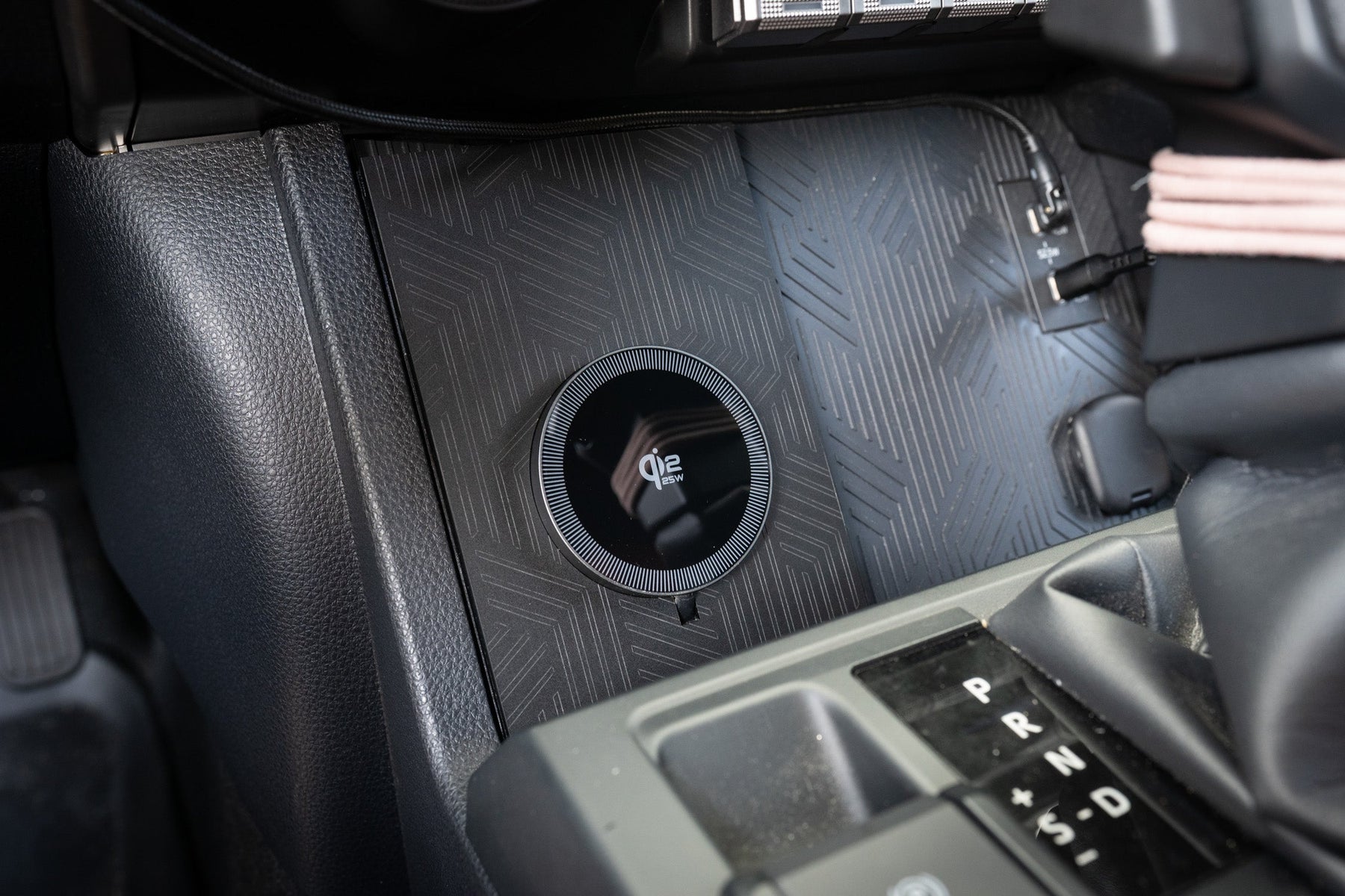 This charger pad is designed for the 2024+ Toyota Tacoma and the 2025+ Toyota 4Runner factory center cubby.