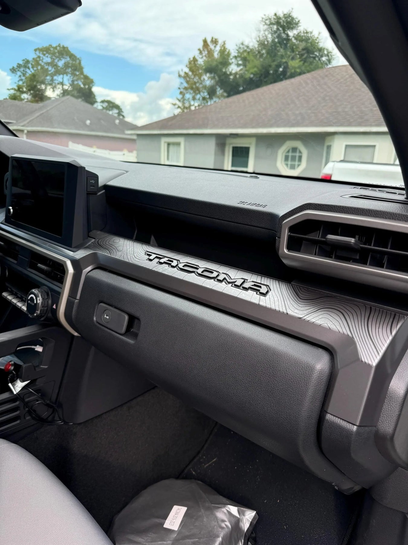 These vinyls really do add some style to the interior of your 2024 Toyota Tacoma. The contour lines are printed on clear vinyl and then topped with a layer of matte laminate to protect it all.