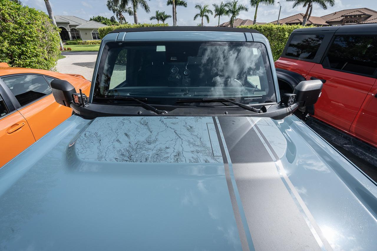 Long before the Bronco came out it has been customary for off roaders to put matte material on their hood to cut out glare. This glare can come from the sun or lights mounted above the vehicle's hood.