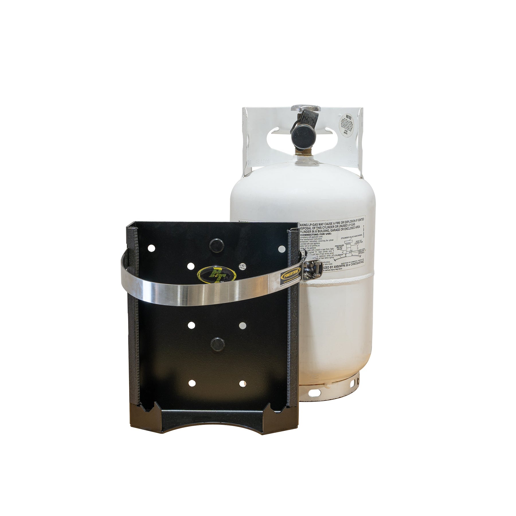 Propane Tank Bracket for 4.25 lb., 10 lb., and 11 lb., 9 in. Diameter steel propane tanks from Power Tank. This marine-grade bracket fits the 11 lb. Worthington propane tank, the 10 lb. Flame King propane tank, the 10 lb. Manchester propane tank, 10 lb Ignik propane tank, and the 4.25 lb. Worthington propane tank. Use this propane tank holder to mount a tank to your vehicle or trailer.