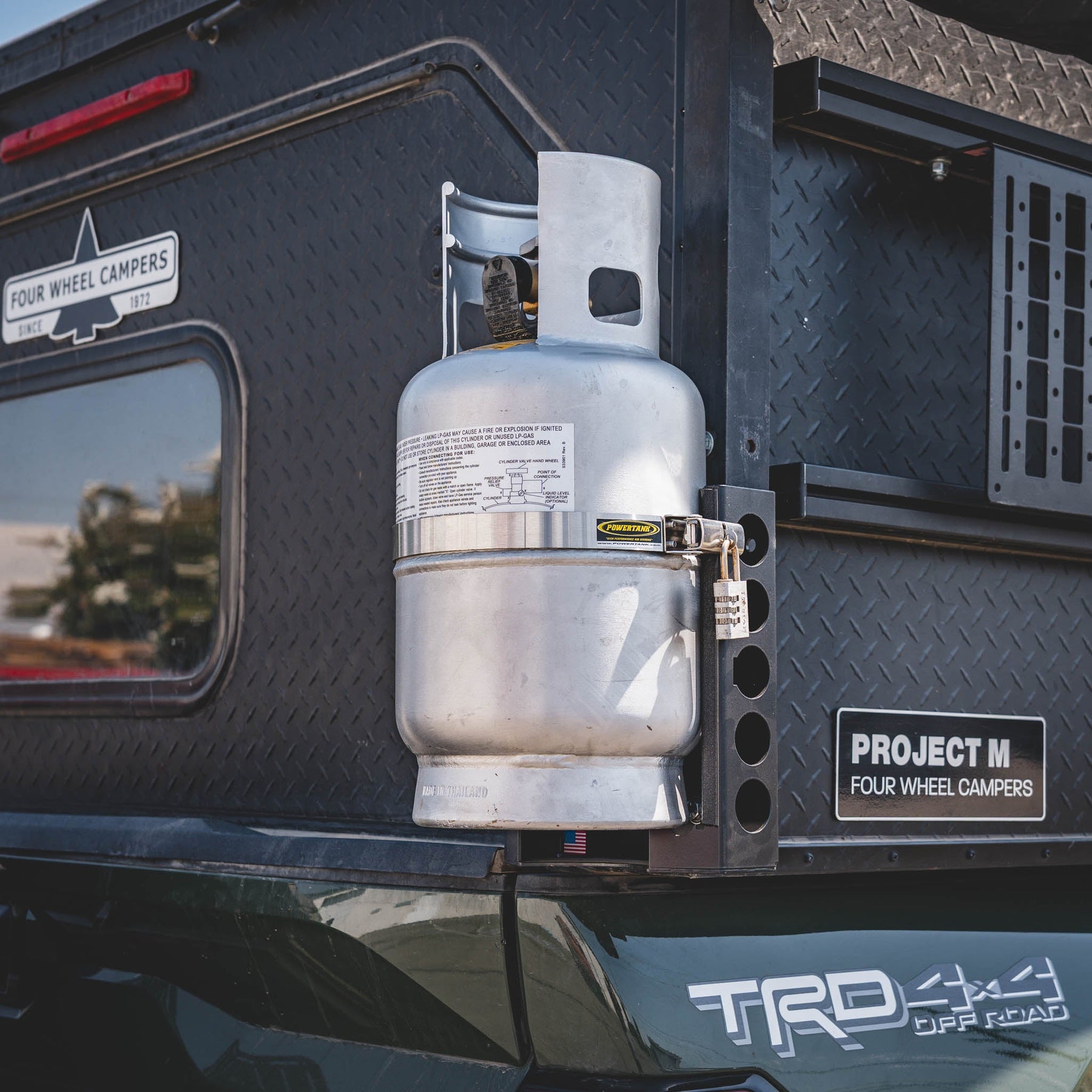 Optional: Add an extra strap for 10 lb and 11 lb propane tanks that are mounted horizontally or experiencing high impacts over water or washboard roads.