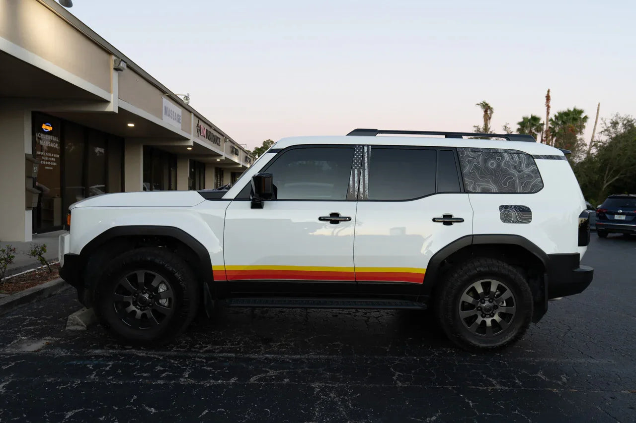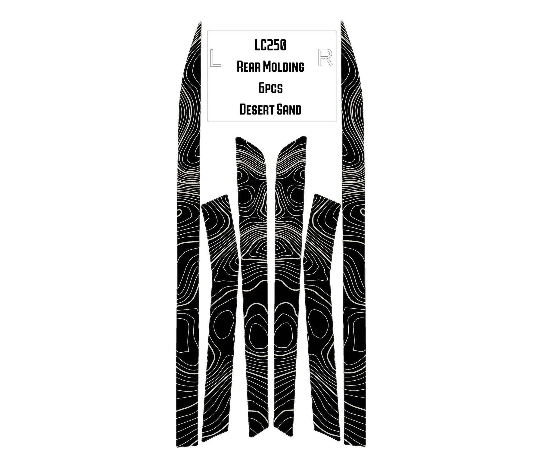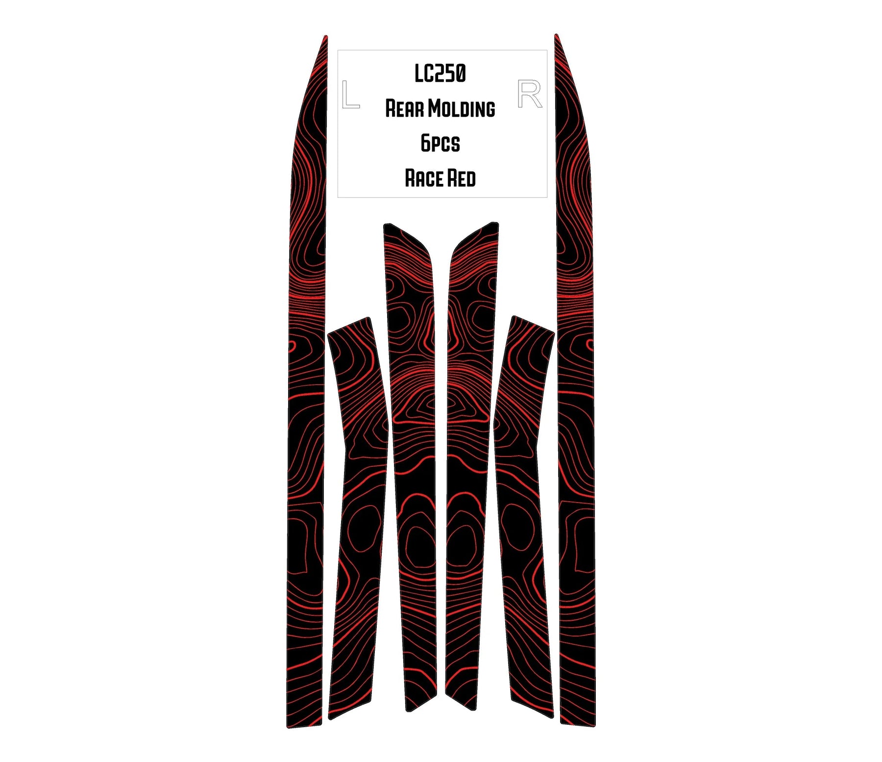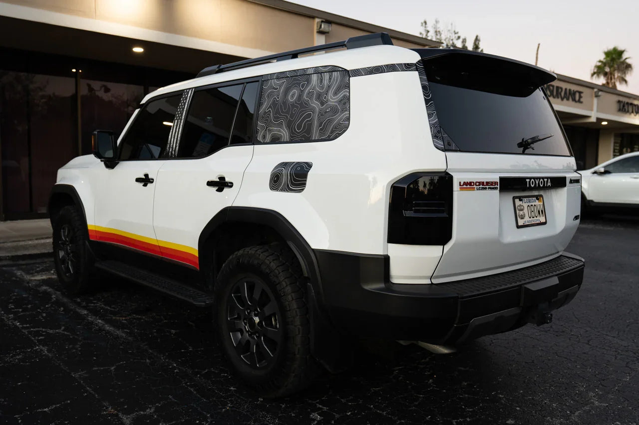 This vinyl can be used to cover up minor imperfections and protect your rear trim against abrasions and fading while adding a topographic map design. You choose the color of the contour lines.
